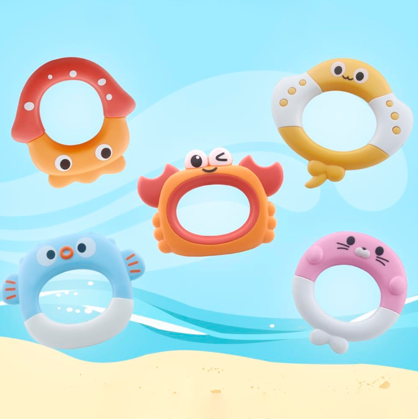 -Incluye: 1 pulpo flotante + 5 anillos con forma de animales marinos